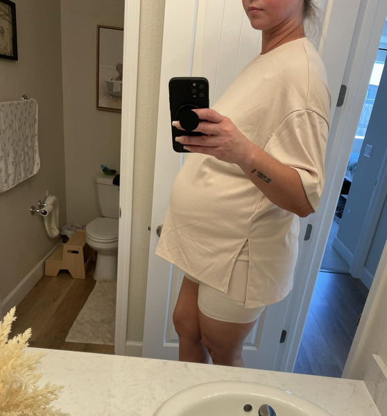 Thoughtfully designed to sit comfortably over your bump without feeling tight or restrictive. A flattering fit that evolves with your body through every stage.